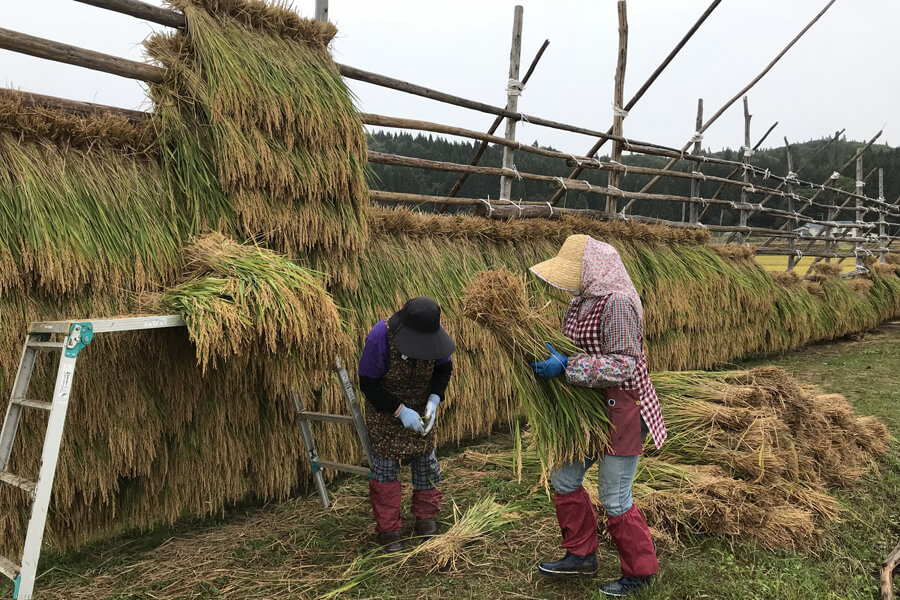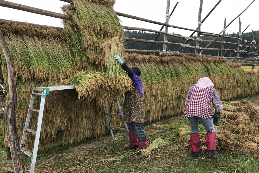 令和元年(2019年)産のはさがけ米は、現在、稲架に掛けて天日乾燥中です。